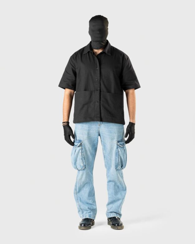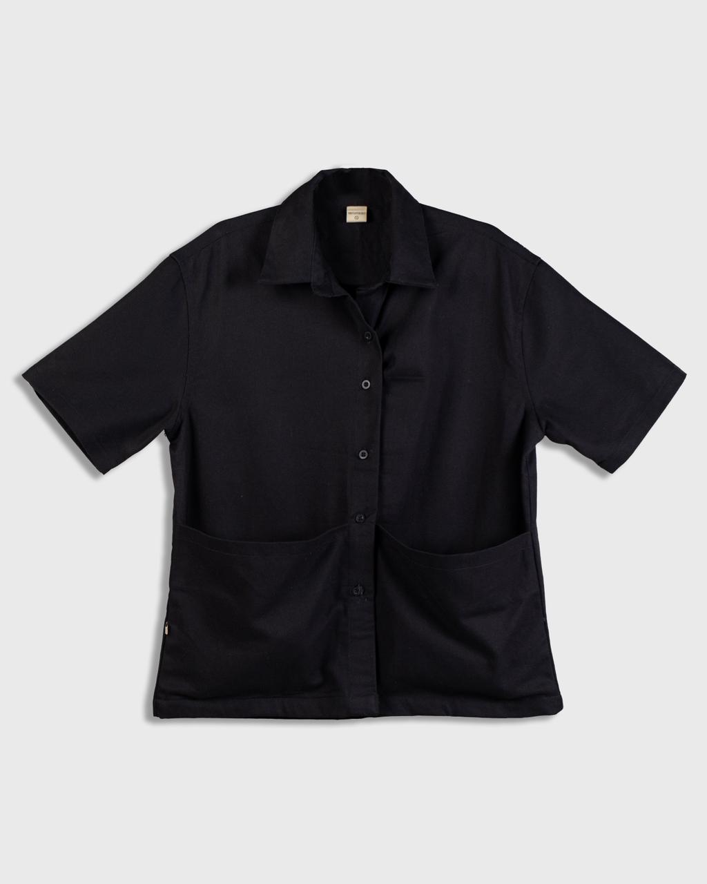 Two oversized 13-inch front pockets turn the shirt into a utility essential — spacious enough to carry your daily gear and more, so you can move hands-free. Its half sleeves make it versatile across seasons, while the clean black and earthy beige shades keep it minimal and timeless.