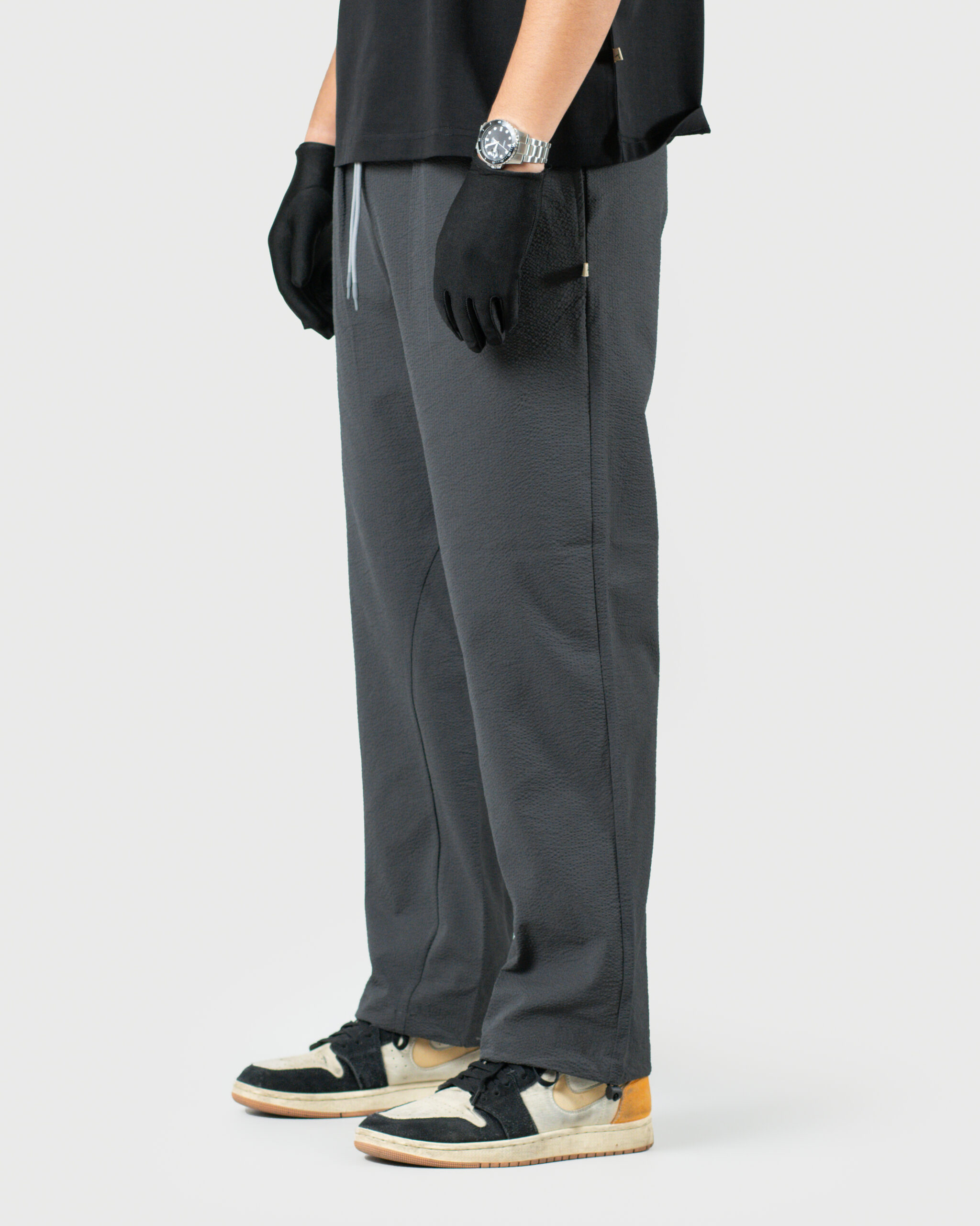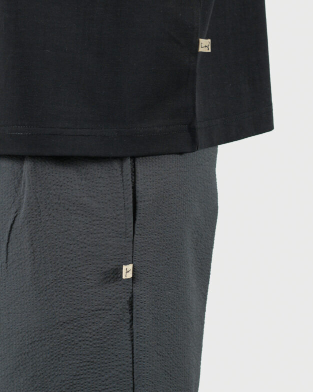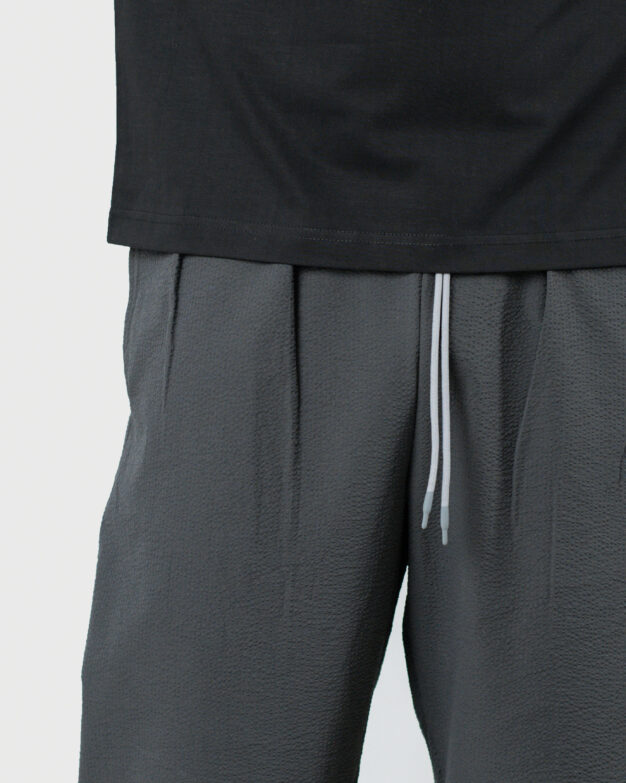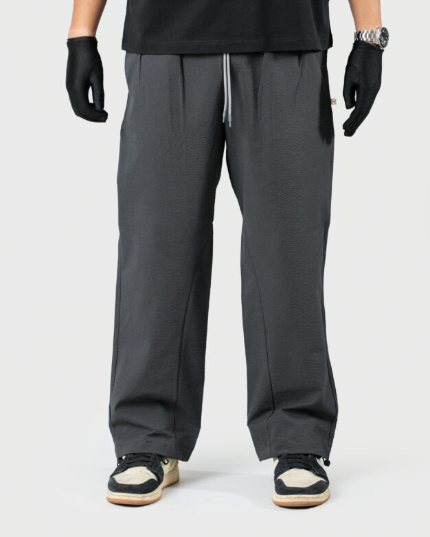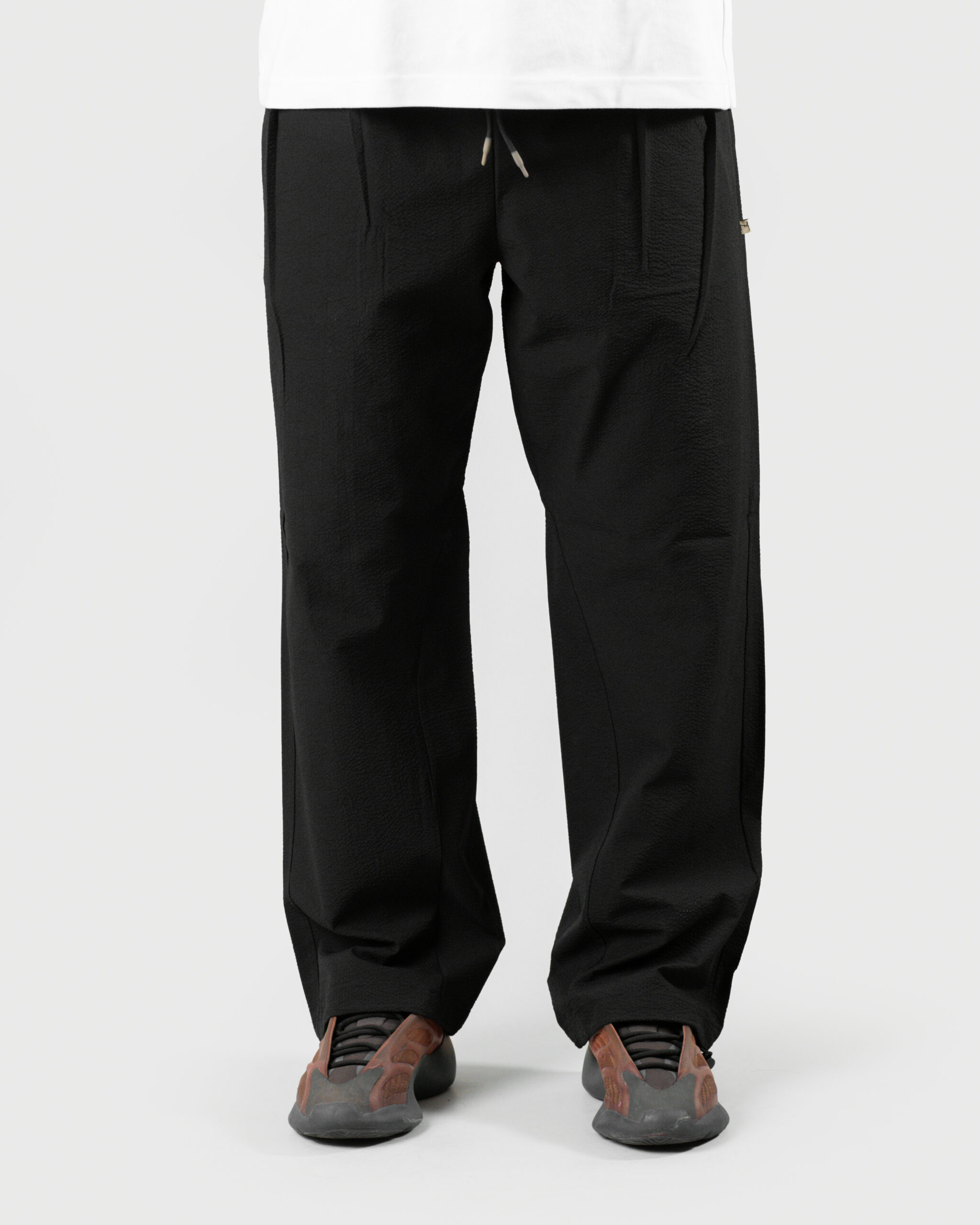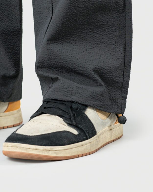 Crafted from airy bubble crush fabric, The Lowr is designed for movement, breathability, and quiet structure. The silhouette remains relaxed, while reverse pleats at the front introduce a clean, composed finish—balancing comfort with a sense of refinement.
