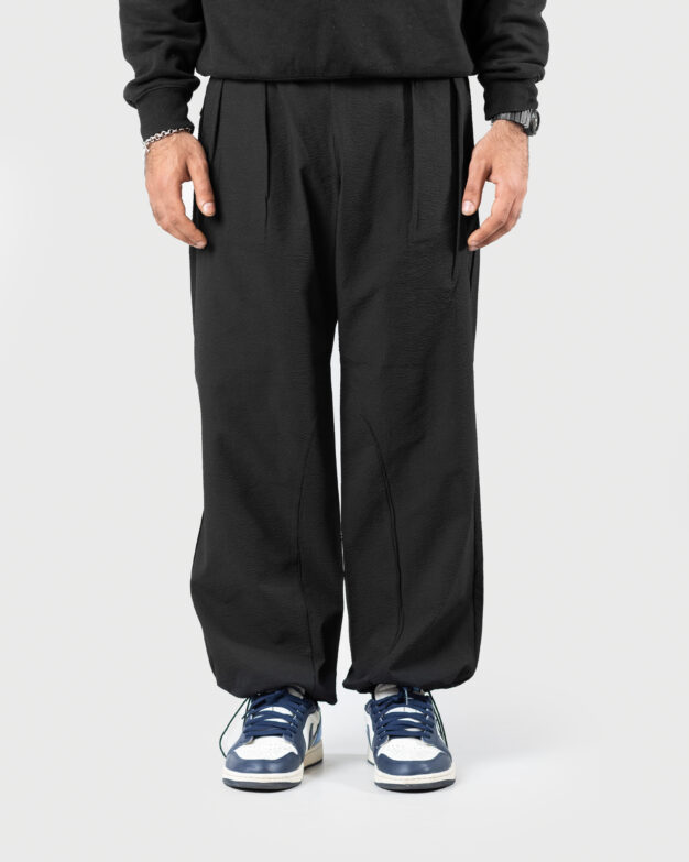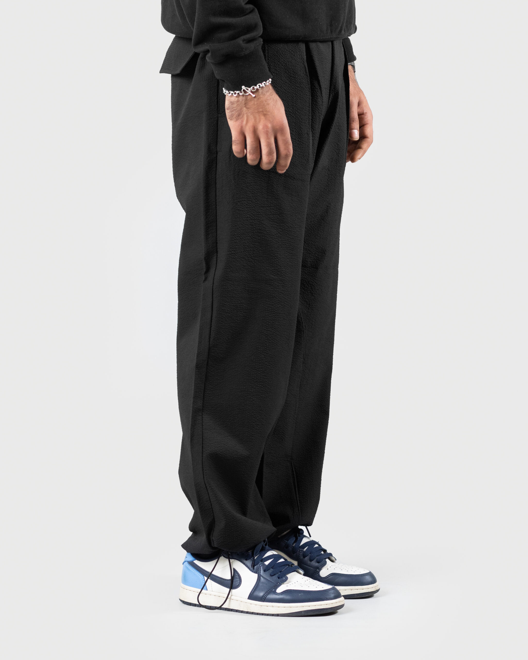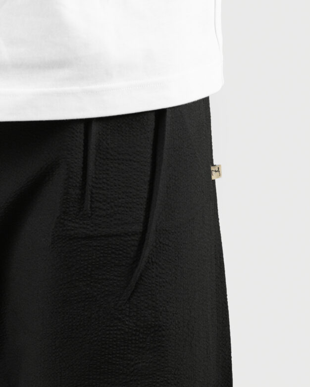 Crafted from airy bubble crush fabric, The Lowr is designed for movement, breathability, and quiet structure. The silhouette remains relaxed, while reverse pleats at the front introduce a clean, composed finish—balancing comfort with a sense of refinement.